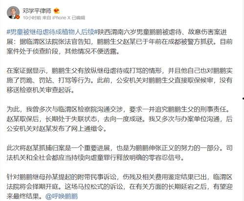 首先,让我们来回顾一下这个令人痛心的虐鹏鹏事件。据媒体报道,鹏鹏,一个年仅8岁的孩子,在渭南家中遭受了严重的虐待。他的后妈,也就是施暴者,用极其残忍的手段对待鹏鹏,导致孩子身心受到极大伤害。这一事件一经曝光,立刻引起了社会各界的广泛关注和愤怒。